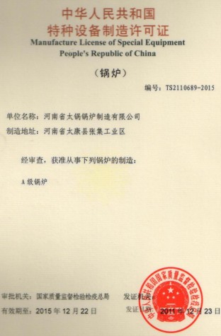 锅炉制造许可证